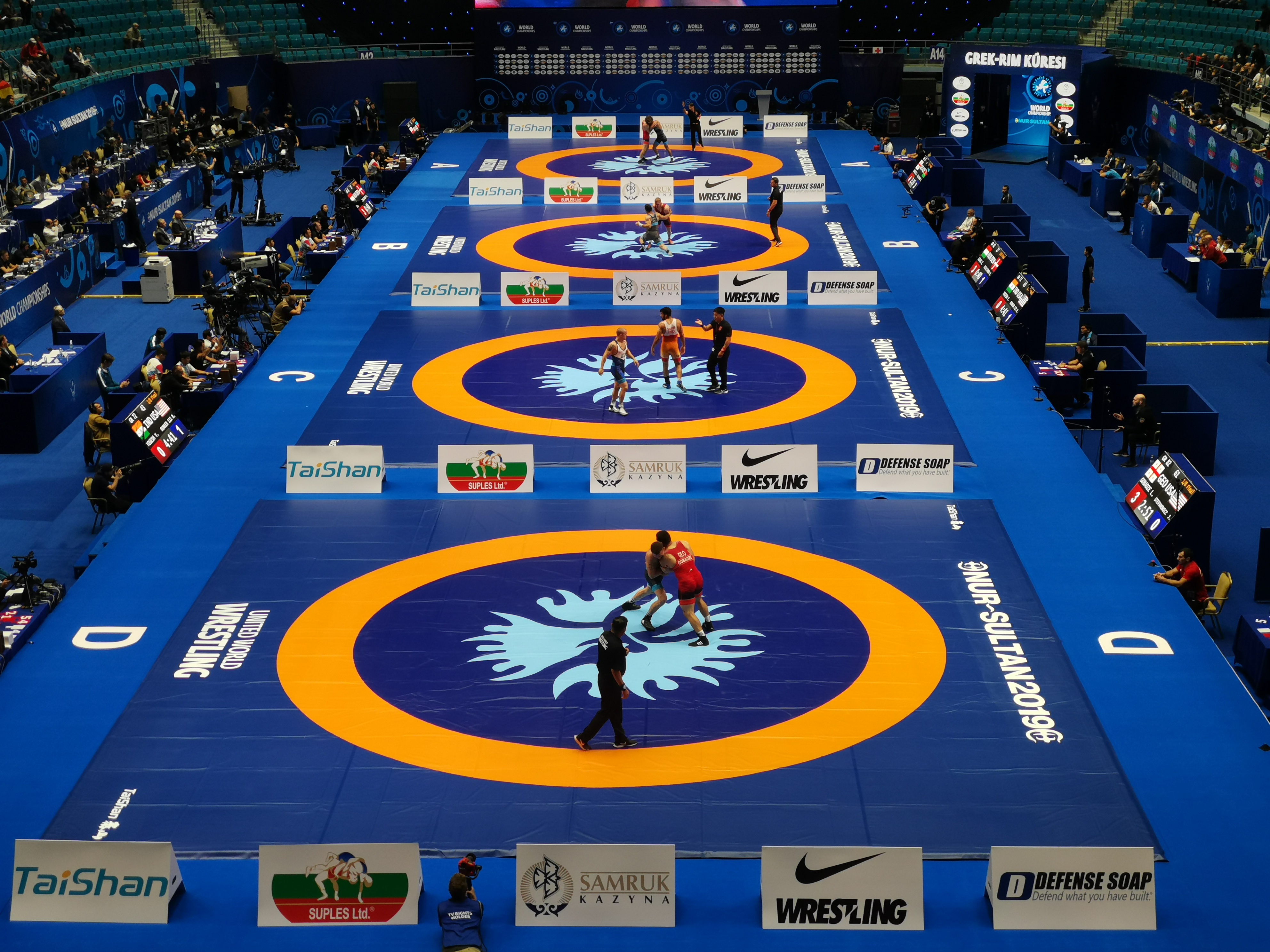 9月14日,2019世界摔跤锦标赛在哈萨克斯坦的阿斯塔纳拉开战幕。本届世锦赛作为东京奥运会的资格赛,吸引来自全球104个国家的1000余名运动员参与其中,争夺属于自己的冠军荣耀。泰山体育作为本届世锦赛的独家器材供应商,为大赛提供品质器材与完美服务。