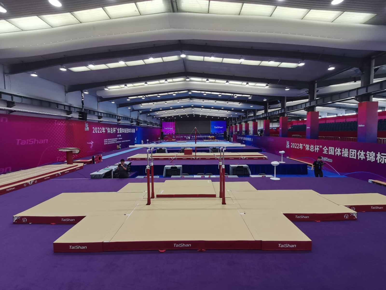 作为赛事承办方,泰山体育协同赛事组委会全力筹办各项工作,高标准打造比赛场馆、训练场馆,并提供高端体育装备。比赛场地总共分为4个区域,将在这里进行跳马、吊环以及自由操等7个比赛项目。北面组委会专门搭建了能承载300人的看台。在遵守疫情防控的前提下,大赛组委会将在比赛期间邀请部分市民代表中小学生以及体育爱好者来到比赛现场,近距离感受国家级体育赛事的魅力。
